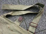 完全 本体の左右側面上端にフック付 通常の雑のうに比べ全体的にやや小振りな形状 蓋部表面右端〜中央部にのみ戦前の「陸軍払下後」による注記あるも負紐含む極〜美品 蓋留革「合計3本共」至って柔軟な極美品