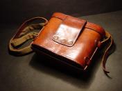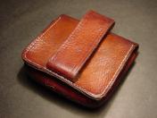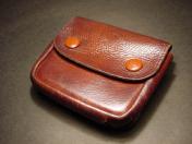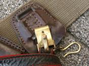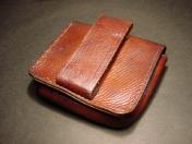茶牛革 表面蓋部にスナップ留式の釦2個付く珍種の中型 帯革通付 縦8×横9×厚み2.8cm 支那事変頃〜大東亜戦初期頃に 当時軍装店で販売していた純然たる国産品にして定寸法の略刀帯に縛着出来る型 極美品 (画像に写る略刀帯は別売です)