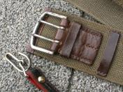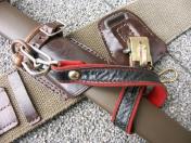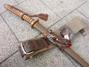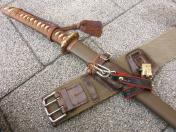 陸軍将校用略刀帯・揃着脱式の将佐官用下げ尾〜軍刀脇差用の固定革〜拳銃ホルスター用の留革〜図のう吊用の金具留付 陸軍近衛師団経理部少佐 津田俊雄氏 所持品