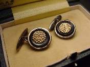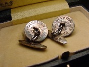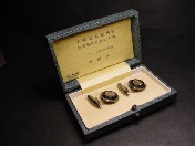 揃共箱「未使用完全品」付 カフス本体は尚美堂製の18銀 カフス本体裏面の見えない位置に満州国皇帝陛下大阪御来訪警衛警備記念〜大阪府〜昭和10年4月の陽刻文字〜K18銀の打刻印 実用可能な未使用完全品