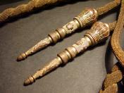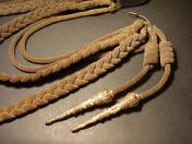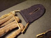 飾緒留「ベロ」本体は4.5cmの黒ラシャ製 飾緒本体「金モール部」は全体的に見て線はやや細め 石筆「ペンシル」部はゴリッとした物を使用縄目「金モール」は全体的に当時使用による所々ホツレ気味あるも極〜美品 石筆は左右共に極美品