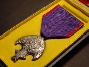 揃共箱「表面は金文字は鮮明なれど虫舐め気味の美品〜 内部は「極美品」付 記章本体〜綬「リボン」含む未使用完全品