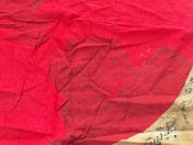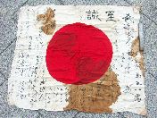 戦時日章旗「至誠〜祈武運長久〜隣の戦友」寄せ書き・所々に戦地で戦傷した際に於る血痕